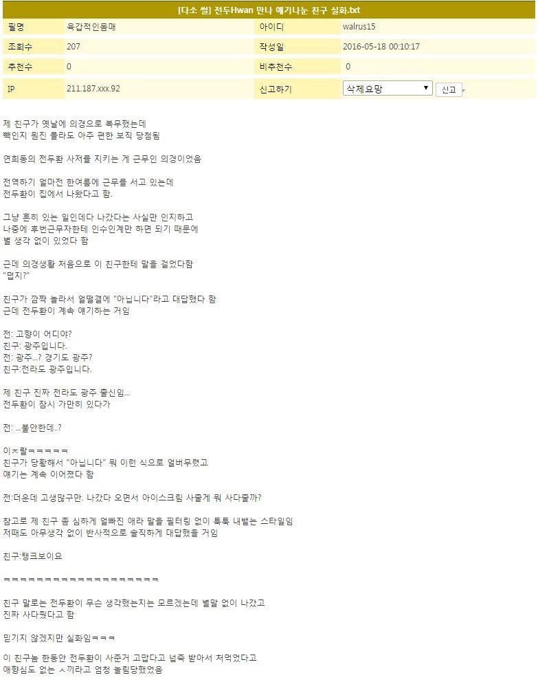 1979년 군 내 불법 사조직인 하나회를 결성, 12.12 군사반란을 주도하였다. For faster navigation, this iframe is preloading the wikiwand page for 전두환. 전두환(全斗煥, 1931년 1월 18일 ~ )은 대한민국의 제11·12대 대통령이다. Born 6 march 1931) is a former south korean politician and army general who served as the. 젊은 사람들은 나에게 감정이 안좋은가 봐.